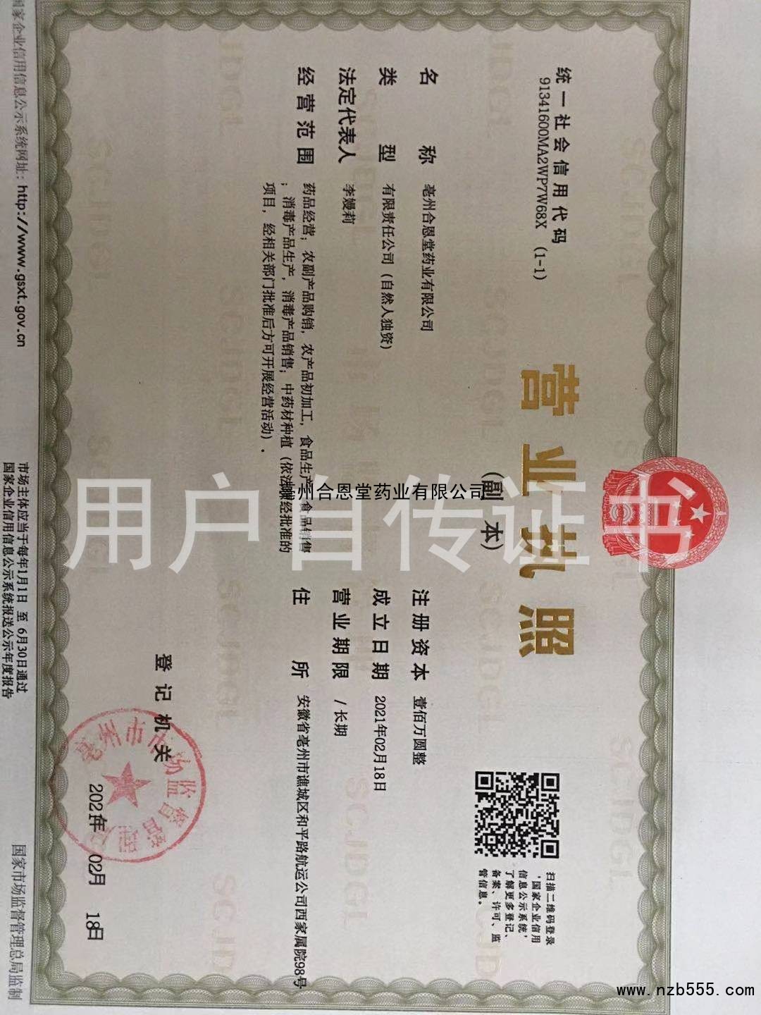 首頁 > 榮譽(yù)資質(zhì) > 亳州合恩堂藥業(yè)有限公司