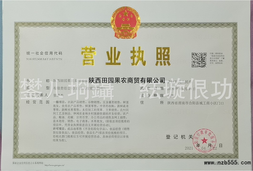 榮譽(yù)資質(zhì) 陜西田園果農(nóng)商貿(mào)有限公司
