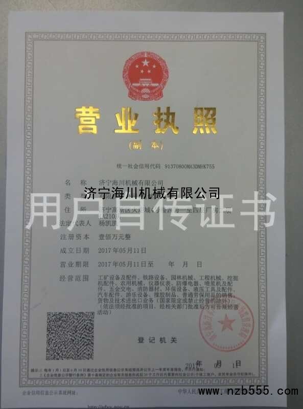 首頁(yè) > 榮譽(yù)資質(zhì) > 濟(jì)寧海川機(jī)械有限公司