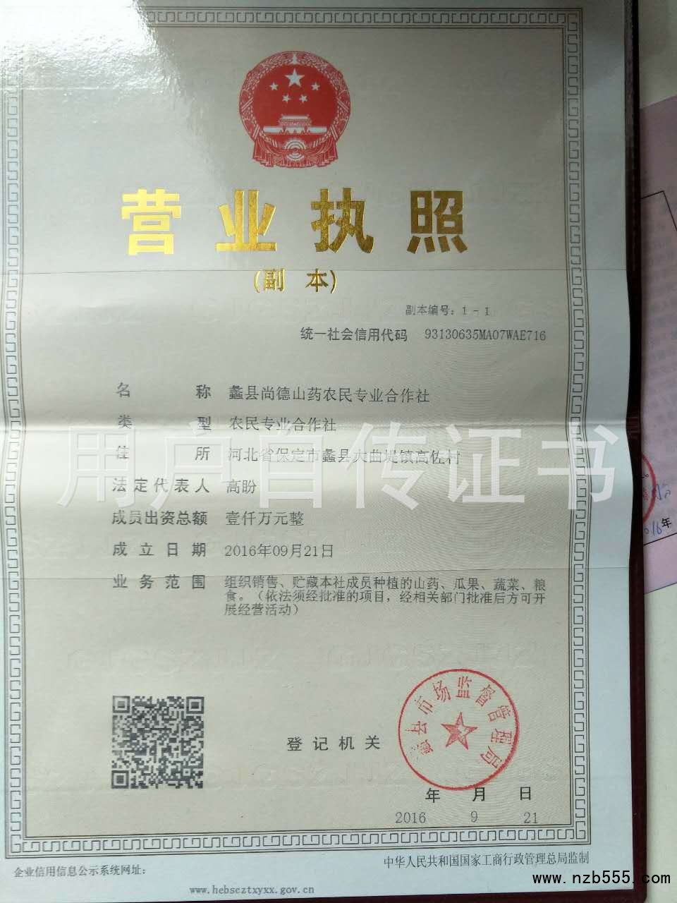 | 發(fā)證機(jī)構(gòu): | 蠡縣市場(chǎng)監(jiān)督管理局 | 發(fā)證時(shí)間 : | 2016-09-21 |