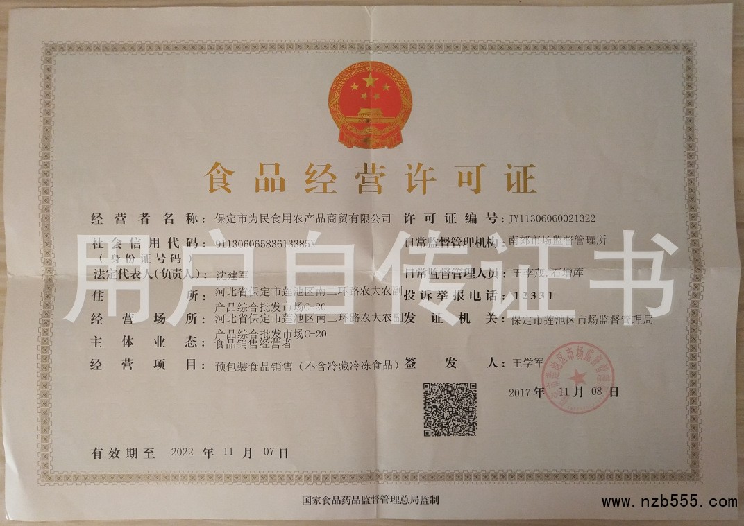| 發(fā)證機(jī)構(gòu): | 保定市蓮池區(qū)市場(chǎng)監(jiān)督管理局 | 發(fā)證時(shí)間 : | 2017-11-08 |