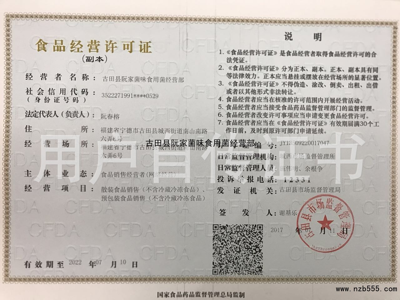 榮譽(yù)資質(zhì) 古田縣阮家菌味食用菌經(jīng)營部