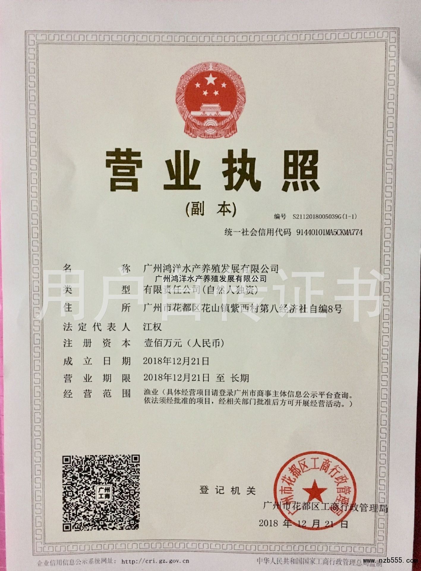 | 發(fā)證機(jī)構(gòu): | 廣州市花都區(qū)工商行政管理局 | 發(fā)證時(shí)間 : | 2018-12-21 |