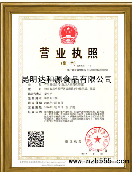 首頁 > 榮譽(yù)資質(zhì) > 昆明達(dá)和源食品有限公司