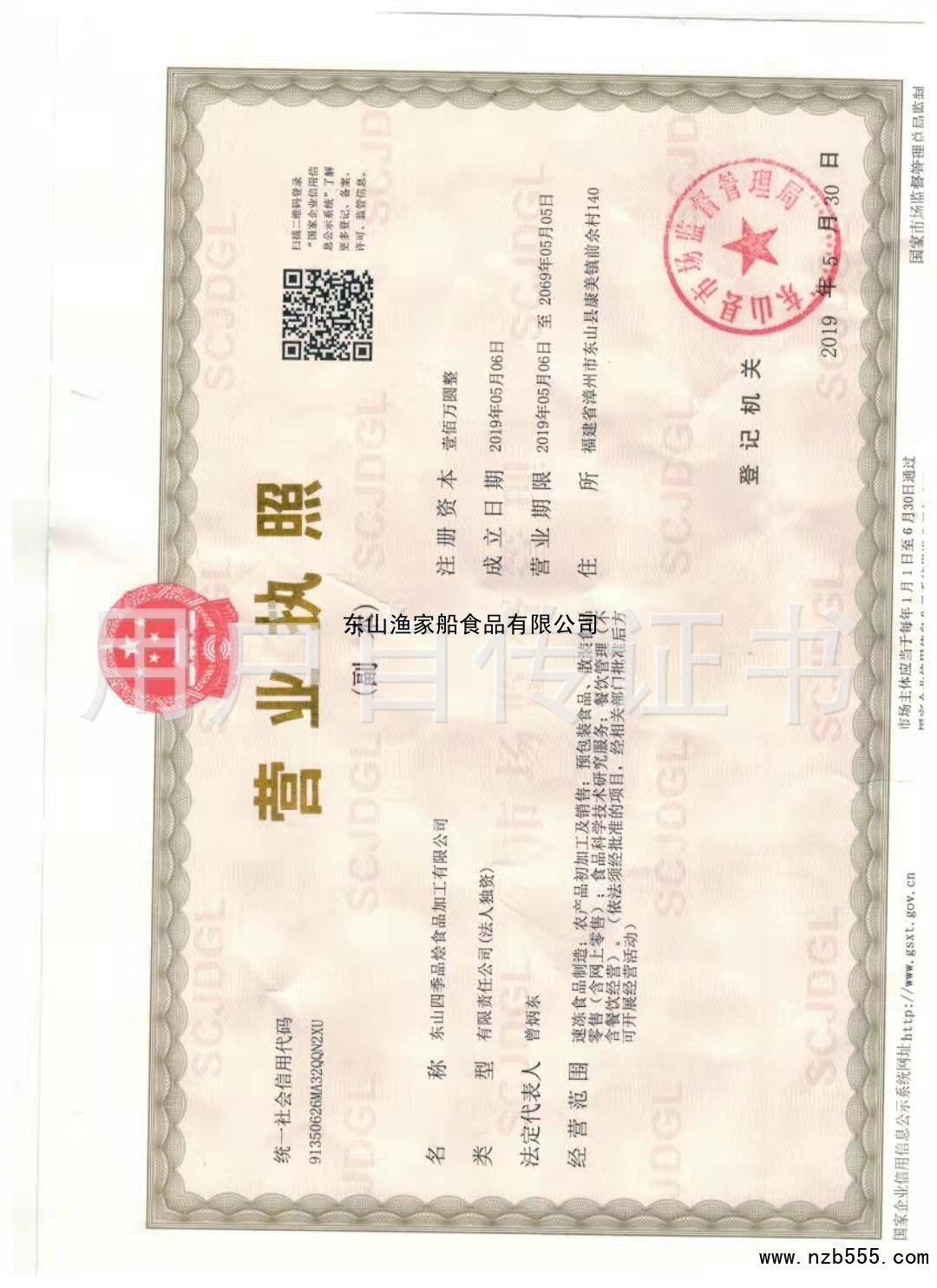 榮譽(yù)資質(zhì) 東山漁家船食品有限公司
