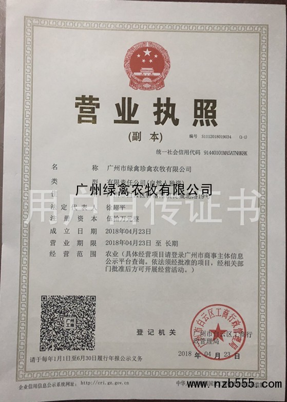 | 發(fā)證機(jī)構(gòu): | 廣州市白云區(qū)工商行政管理局 | 發(fā)證時(shí)間 : | 2018-04-23 |