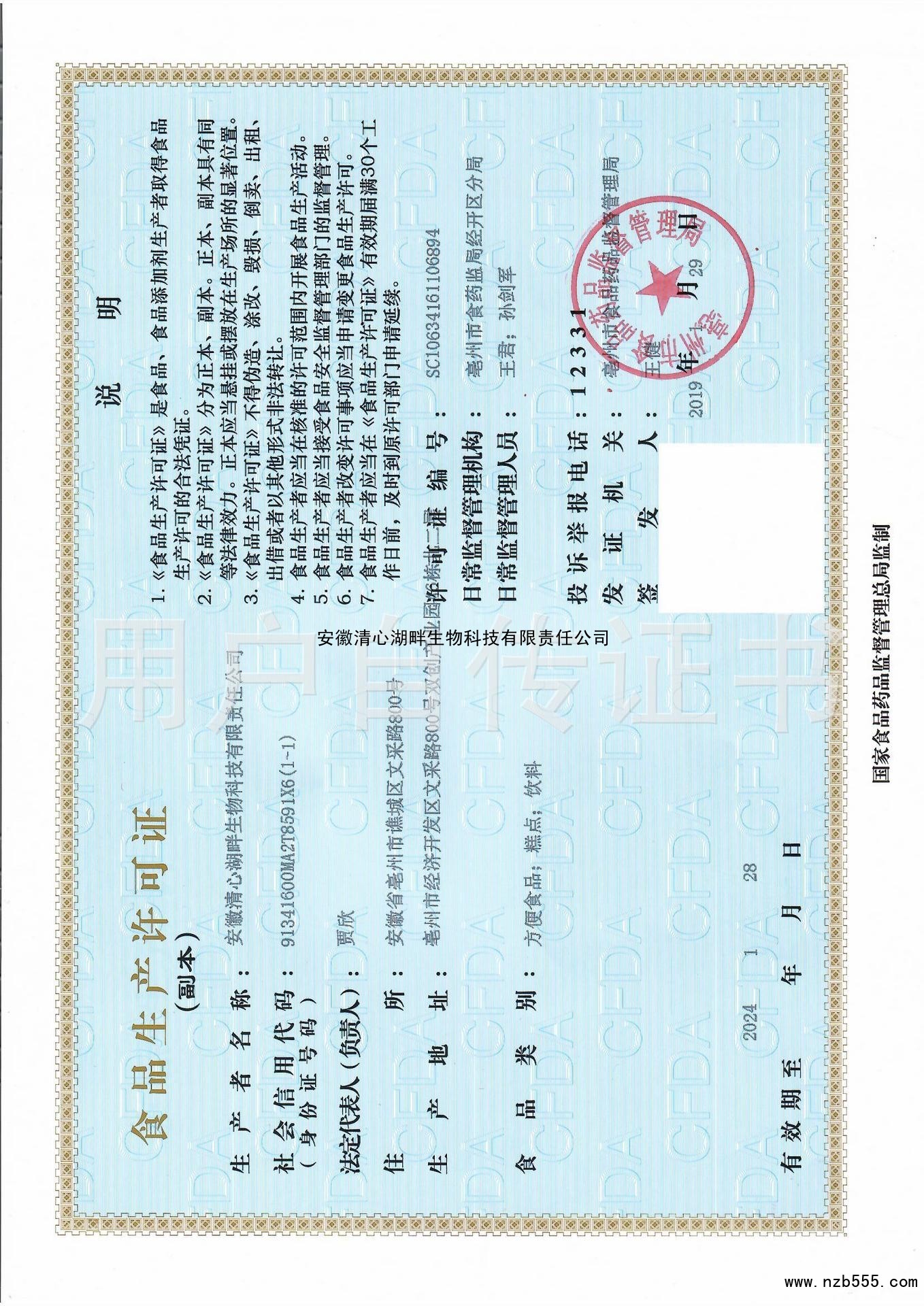 榮譽(yù)資質(zhì) 食品生產(chǎn)許可證(除乳制品、嬰幼兒配方乳粉、酒之外的生產(chǎn)許可證)