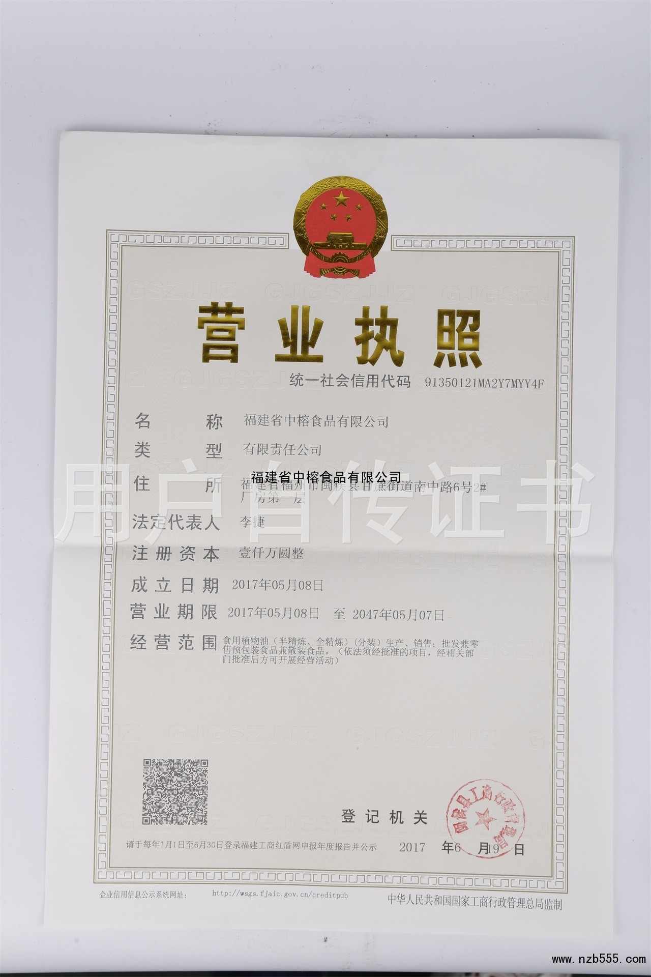 | 發(fā)證機(jī)構(gòu): | 閩侯縣工商行政管理局 | 發(fā)證時(shí)間 : | 2017-06-09 |