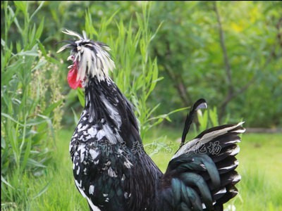 公雞外形:嘴黃、腳黃、皮黃;頭細(xì)、骨細(xì);頭部大小適中,單冠直立鮮紅,冠尖5個(gè)或6個(gè),肉垂發(fā)達(dá)鮮紅。頭、頸、背羽金黃色,胸腹和主翼羽烏黑色,肩鞍羽色棗紅,尾巴羽毛黑綠色。