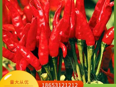 中熟品種,干制小辣椒,植株直立緊湊,株高90公分左右,花簇長果叢生,果實尖長細小,朝天生長,果長5公分左右,果類彎曲,呈子彈形狀,辣味濃,畝產(chǎn)干椒70-1000市斤。