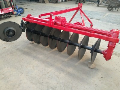1LYQ系列驅動圓盤犁是標準三點懸掛式,有中間齒輪傳動系統(tǒng)和側箱齒輪傳動系統(tǒng)兩套傳動系統(tǒng),可以與15~100馬力拖拉機配套。耕后輪胎痕跡可以完全 覆蓋,所以它可以提高耕作質量和工作效率。該機適用于旱地和水田。當在水田中耕作時,它可以使土壤完全翻轉,平整。它可以把小麥和水稻等的秸稈切斷,并翻 埋到土壤里面,它們在土壤里腐爛,增加了土壤的有機質。 該機也有節(jié)省時間,節(jié)約勞力,提高工作效率,和降低成本的特點。在水田中耕作優(yōu)勢更加明顯。