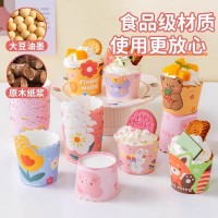 卡通紙杯蛋糕食品級烘焙專用插牌耐高溫立體蛋糕杯50只少女心