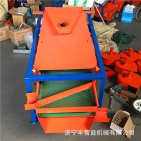 該精選篩為二層篩網,先經過進料口處風機抽風,直接抽走重量輕的雜葉或麥秸稈,上層篩的初次篩分再把大雜清理過,好的糧食(種子)直接落到下層篩網上,下層篩網會把糧食(種子)中的小雜.小石子.有缺陷的糧食(種子)直接漏掉,完好的糧食(種子)會從出料口篩分出來。該小型清糧機解決了揚場機的功能單一,不能有效去除石子.土塊的缺陷,更能為清理.凈選糧食(種子)帶來滿意的效果。該機有占地小,移動方便,便以維修,除塵除雜效率明顯,能耗低,使用簡便等優(yōu)點。