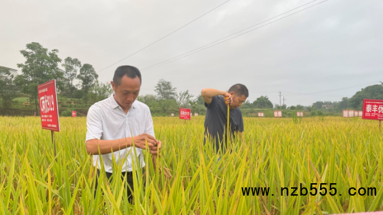 今年合江縣水稻展示示范基地展示水稻品種46個(gè),農(nóng)技人員、鄉(xiāng)賢種植大戶、村民深入到田間地頭,對(duì)水稻新品種進(jìn)行考察,了解長勢長相、抗倒性等情況。