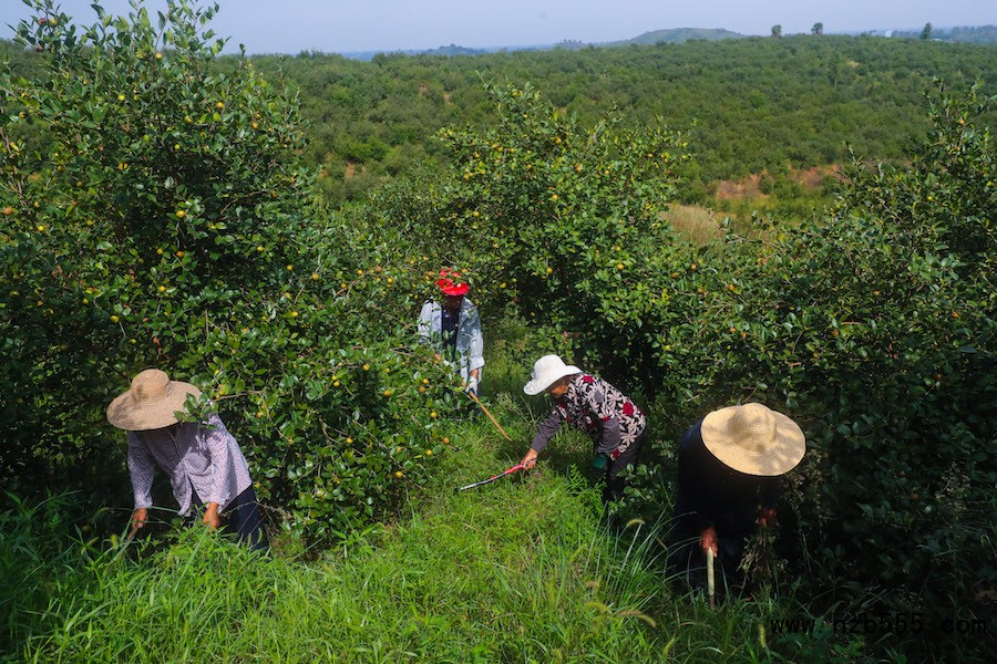 9月9日,河南省信陽市光山縣槐店鄉(xiāng)晏崗村司馬光萬畝油茶園基地內(nèi),村民正在查看油茶籽的長勢(shì)。