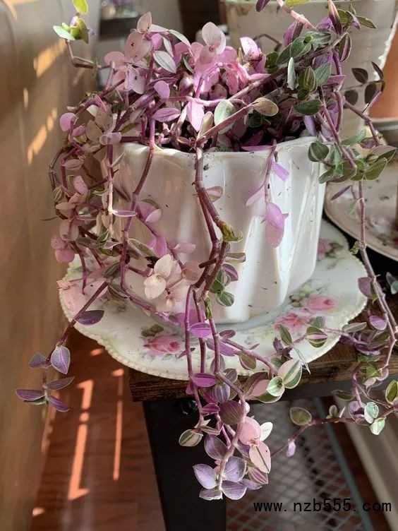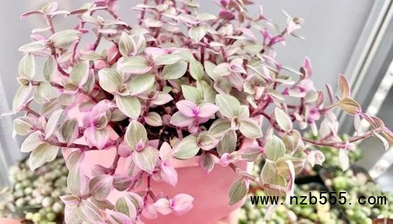這個(gè)是鋪地錦竹草的錦化品種,它和紫露草屬的植物是有較大的親緣關(guān)系的,它有時(shí)候也會(huì)被叫做“胭脂云”,它最大的特點(diǎn)就是,葉子上有粉紅色、奶油色和綠色相間的條紋。