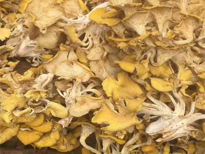 雞油菌在烹制時(shí)菇體很吸油,吃的時(shí)候一口咬下去,和了蘑菇液汁的油水被擠壓流出來(lái),如雞油一般, 故此得名。成熟的雞油菌有點(diǎn)喇叭花的樣子,顏色很鮮艷,比一般的蘑菇要韌,有點(diǎn)彈性, 聞起來(lái)有明顯的杏香味。