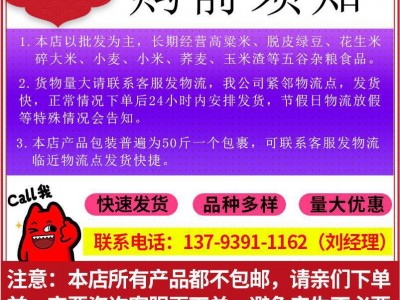 1、本店以批發(fā)為主 ,經(jīng)營各種五谷雜糧,快速發(fā)貨