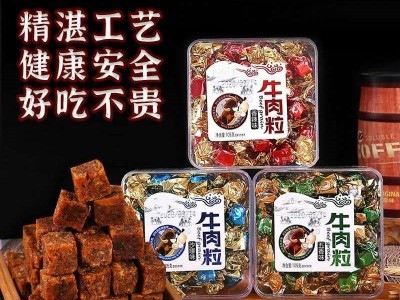 包郵牛肉粒香辣五香沙嗲盒裝休閑零食罐裝牛肉干瓶裝廠家直銷 批發(fā)