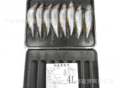 精選多春魚4L( 產(chǎn)地:佛山 長約12~13CM 約130~150克 8尾X30碟 )批發(fā)價(jià):300元/盒;