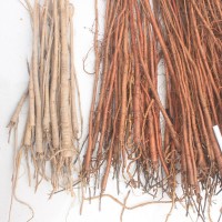 紅皮甘草苗實拍。苗長30公分以上下圖是紅皮甘草苗與黃皮甘草苗得到顏色對比剛出土甘草苗的顏色對比