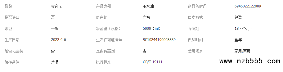 金迎寶純正玉米胚芽油 5L