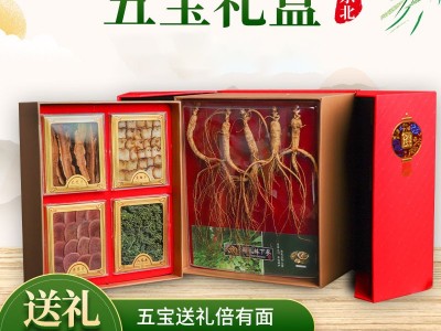 東北特產(chǎn)人參禮盒雙開折疊五寶禮盒產(chǎn)地直供鹿茸片鹿鞭片送禮佳品