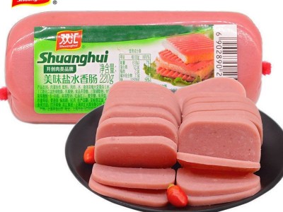 雙匯美味鹽水香腸220g支火腿腸三明治午餐肉切片方腿腸火腿批發(fā)