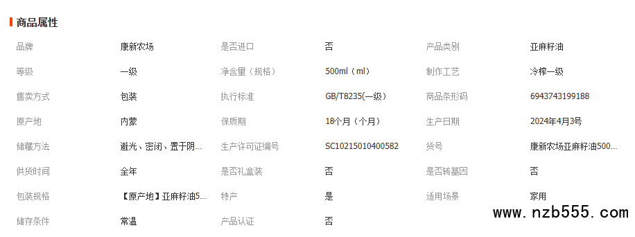 康新農(nóng)場純亞麻籽油物理一級冷榨內(nèi)蒙古胡麻食用油天然亞麻酸