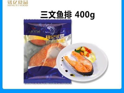 銘億冷凍水產(chǎn)三文魚排400g餐廳酒店供應(yīng)廠家批發(fā)海鮮智利進(jìn)口
