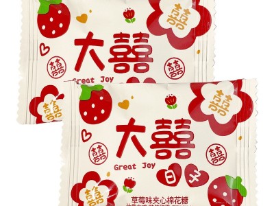 雪可滋大喜日子草莓夾心棉花糖爆漿軟糖訂婚糖結(jié)婚喜糖果零食批發(fā)