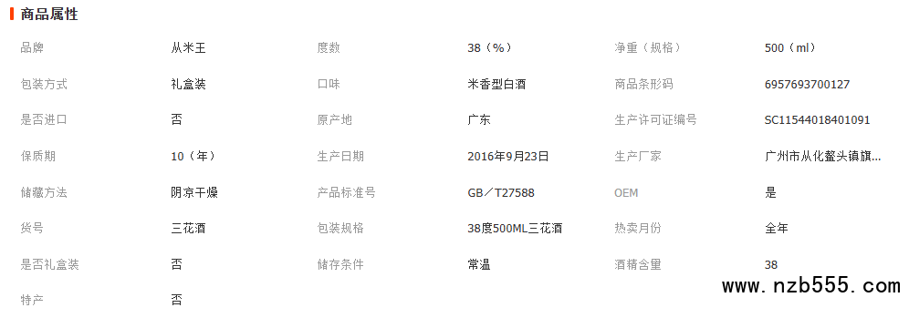 從米王牌從化三花酒38度500mL特產酒水果酒