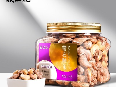 核工記 180特大帶皮紫衣腰果仁500g罐裝干果堅(jiān)果休閑零食代發(fā)鹽焗