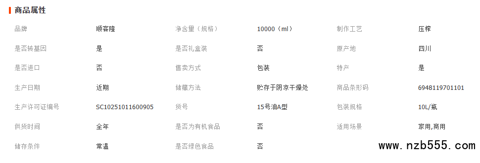 順客隆物理壓榨非轉(zhuǎn)基因植物商用調(diào)和油濃香菜籽油香型10L