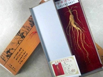 【品名】林下參禮盒 【參齡】8年 【參重】5 克左右 【禮盒尺寸】27.5*8.5*3厘米 【禮盒材質(zhì)】PVC 【配置】一支參一個(gè)禮盒帶證
